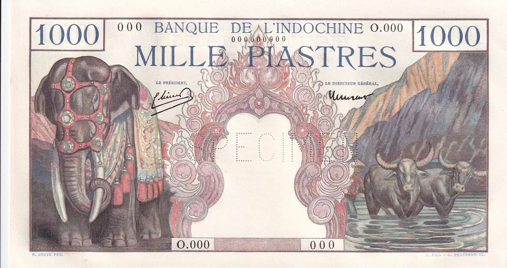 Home > > French Indo-China 1000 Piastres - Elephants - Specimen - 1951