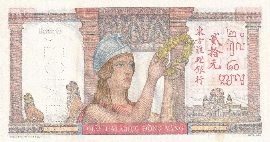 Banknote French Indo-China 20 Piastres Helmeted woman - ND (1949) - Specimen