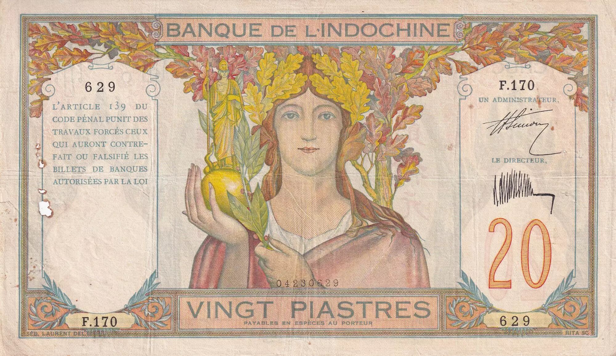 Banknote French Indo-China 20 Piastres - Ruins of Angkor - ND (1928-1931) - Serial F.170 - P.50