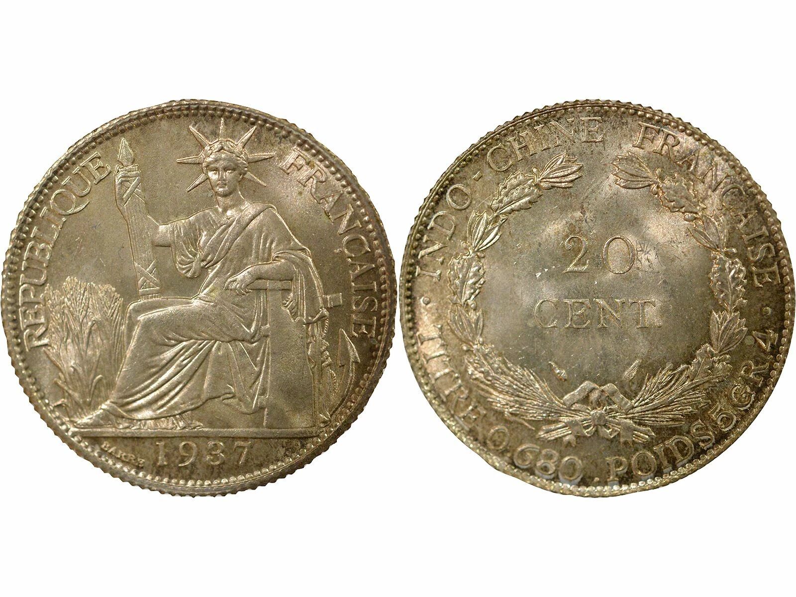 Home > World Coins > Asian Coins > French Indochina > French Indo-China 20 Silver Centiemes - 1937 Paris