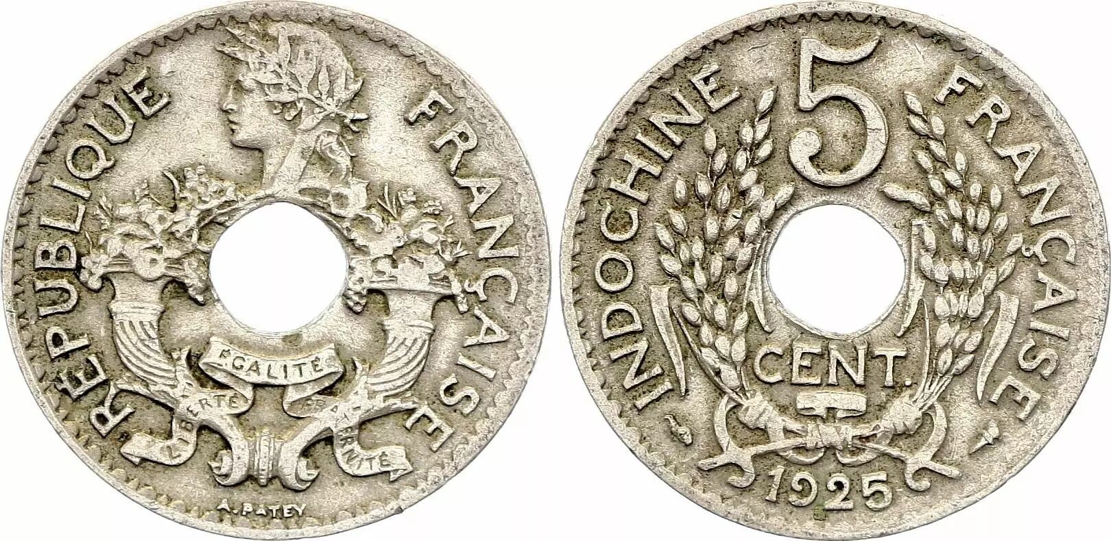 Home > World Coins > Asian Coins > French Indochina > French Indo-China 5 Cent - French Republic - Patey - 1925