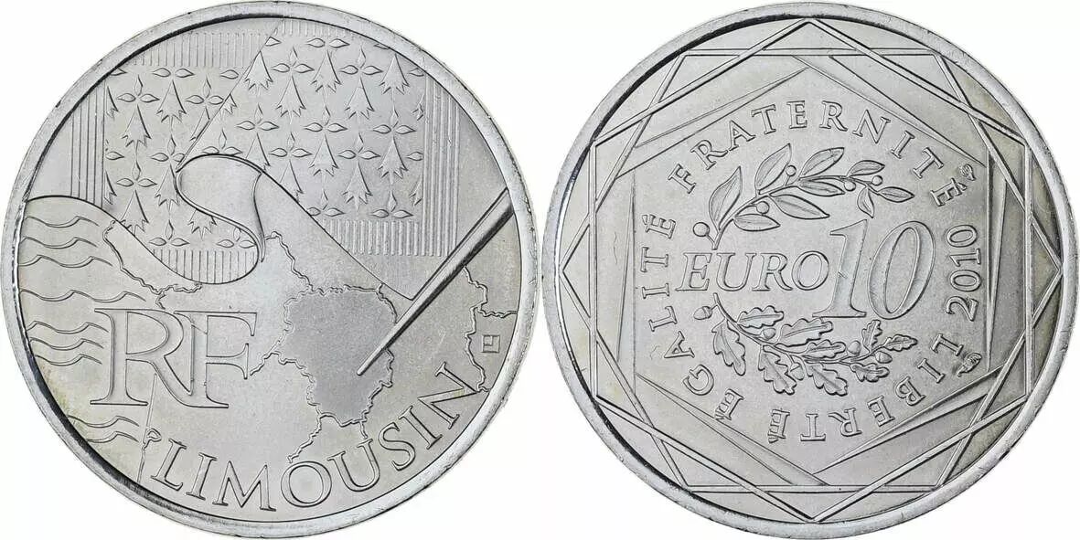 Coin French Mint 10 Euros Silver - Euros from the Regions 2010 - Limousin - Monnaie de Paris 2010