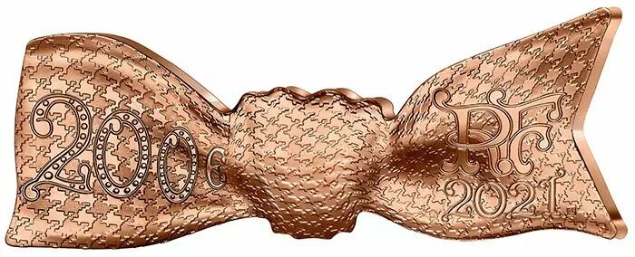 This coin in the shape of the knot that pays tribute to the Miss Dior bottle perfectly reproduces the illusion of fabric thanks to the engraving and the volume. The reverse side of the coin represents the famous houndstooth emblematic of the house of Dior.