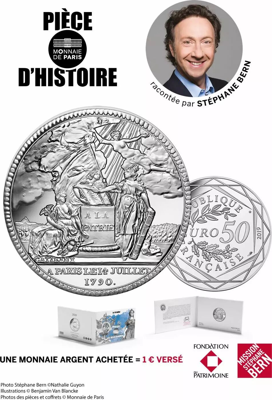 The uncoloured 50 € coin of the wave 1 of "Pièce d'Histoire" is dedicated to the 14th of July.
