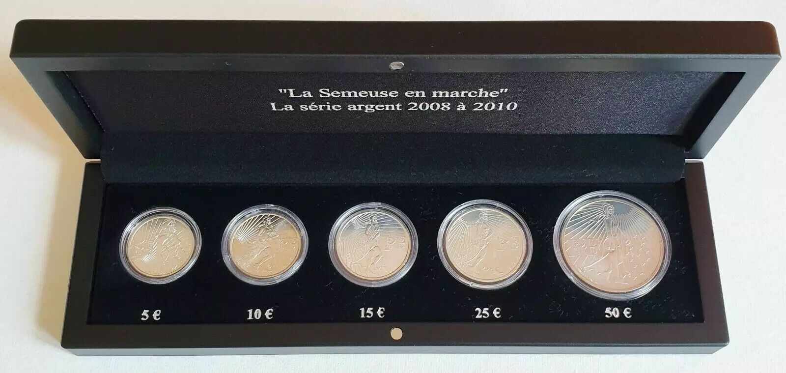 Inclus les monnaies en Argent sur le thème de la Semeuse de 2008 à 2010. Dont la 5, 10, 15, 25 et 50 Euros.