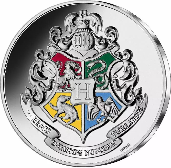 These five coloured 10 silver coins represent the houses and coat of arms of Hogwarts School of Witchcraft and Wizardry. When they arrive in their first year at Hogwarts School, each aspiring wizard is placed in one of the four houses according to their character and ambitions.