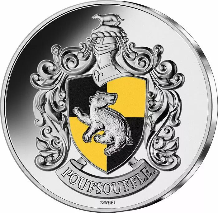 These five coloured 10 silver coins represent the houses and coat of arms of Hogwarts School of Witchcraft and Wizardry. When they arrive in their first year at Hogwarts School, each aspiring wizard is placed in one of the four houses according to their character and ambitions.