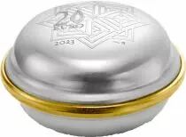 The 20€ silver 1 Oz BE coin has a 999% silver ganache gilded with fine gold (1 to 2 microns) to distinguish it from the biscuits and reproduce the visual contrast often found in Pierre Hermé creations.