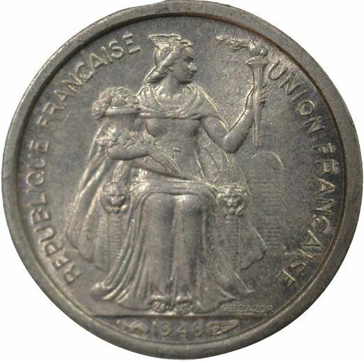Coin French Oceania 50 Centimes Seated Liberty - 1949 Paris