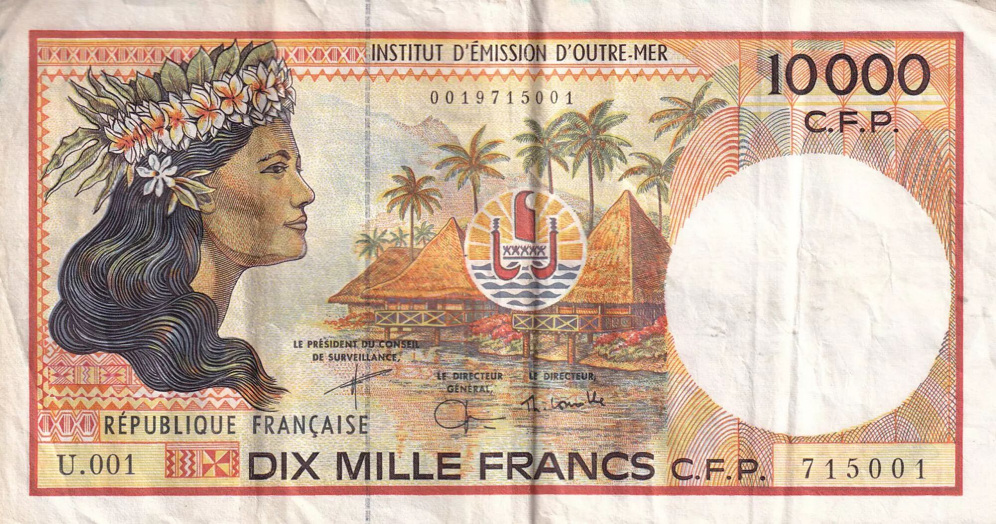 Banknote French Pacific Territories 10000 Francs - Tahitian girl - Fishs - ND (2003-2006) - Serial U.001 - P.4e