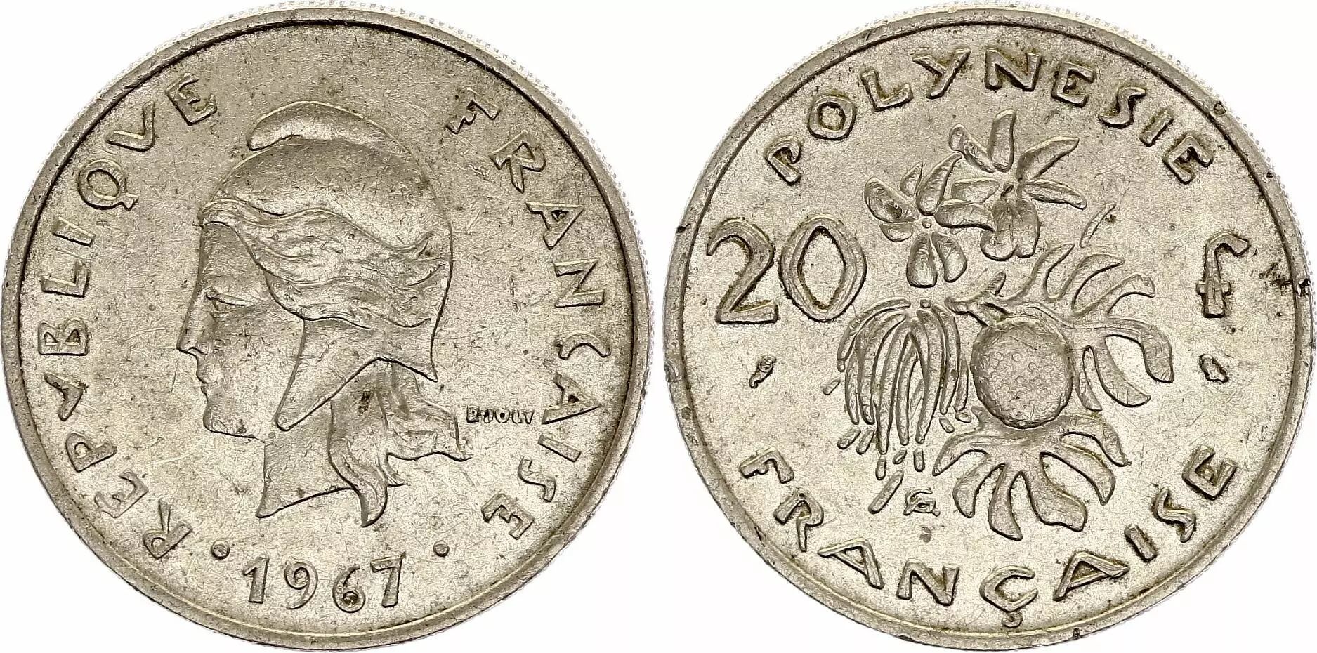 Coin French Pacific Territories 20 Francs - Marianne - Flowers - 1967