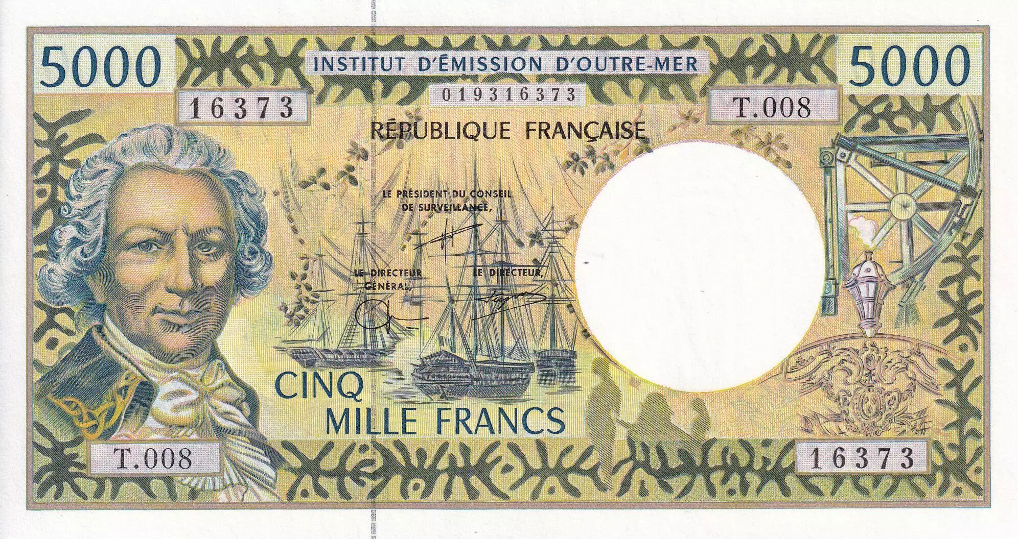 Home > > French Pacific Territories 5000 Francs - Bougainville - Trois-mâts - 2002 - Serial T.008 - UNC - P.3f