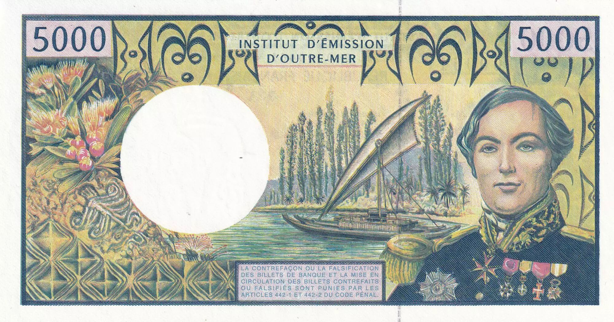 Home > > French Pacific Territories 5000 Francs - Bougainville - Trois-Mâts - ND (1996) - Serial A.005 - P.3a