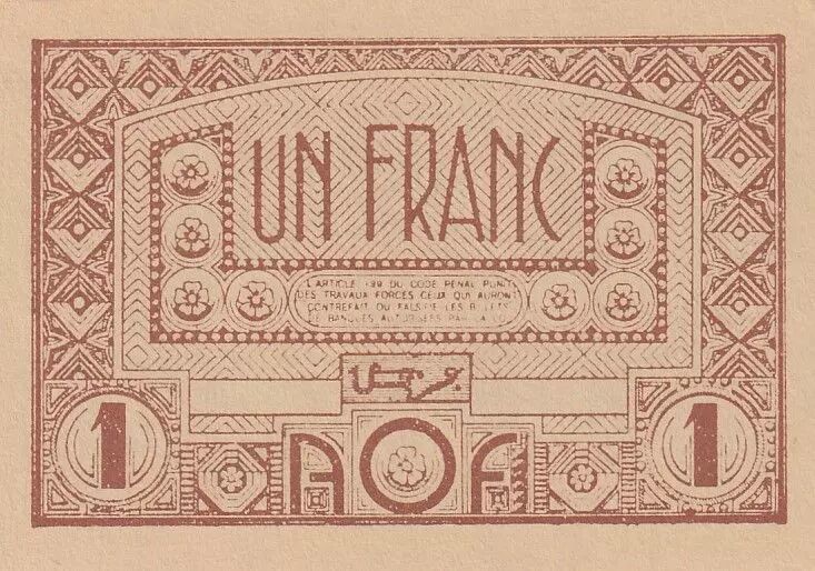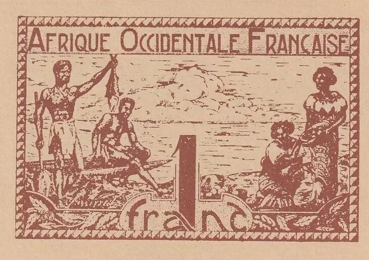 Home > World Banknotes > African Banknotes > Bank of West Africa > French West Africa 1 Franc - Brown, fishermen - ND (1944)