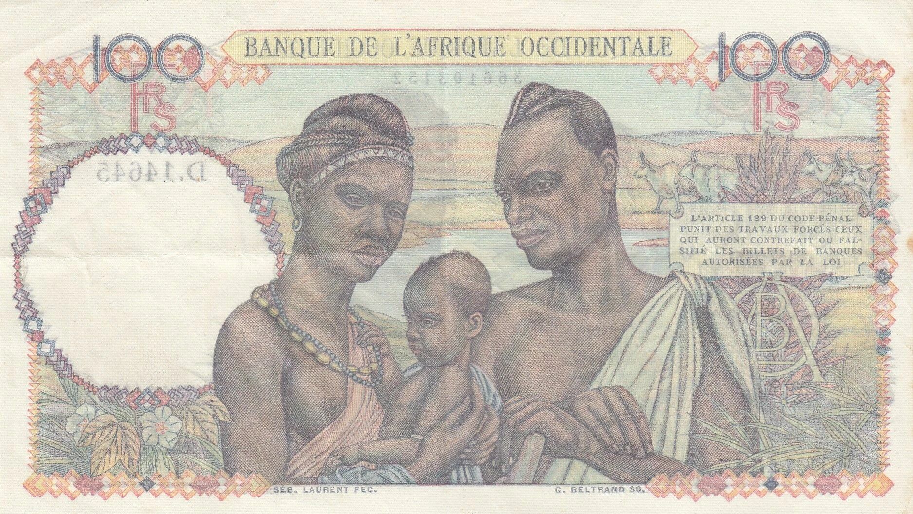 This 100 franc banknote from 1952 is a testament to the economic and monetary history of West Africa. It represents an era when the Banque de l'Afrique Occidentale played a central role in the financial management of the region.