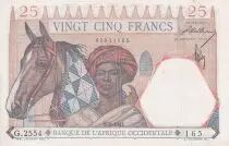 Banknote French West Africa 25 Francs - Man and horse, Lion - Red numerals - 1942 - Serial G.2554 - XF - P.27