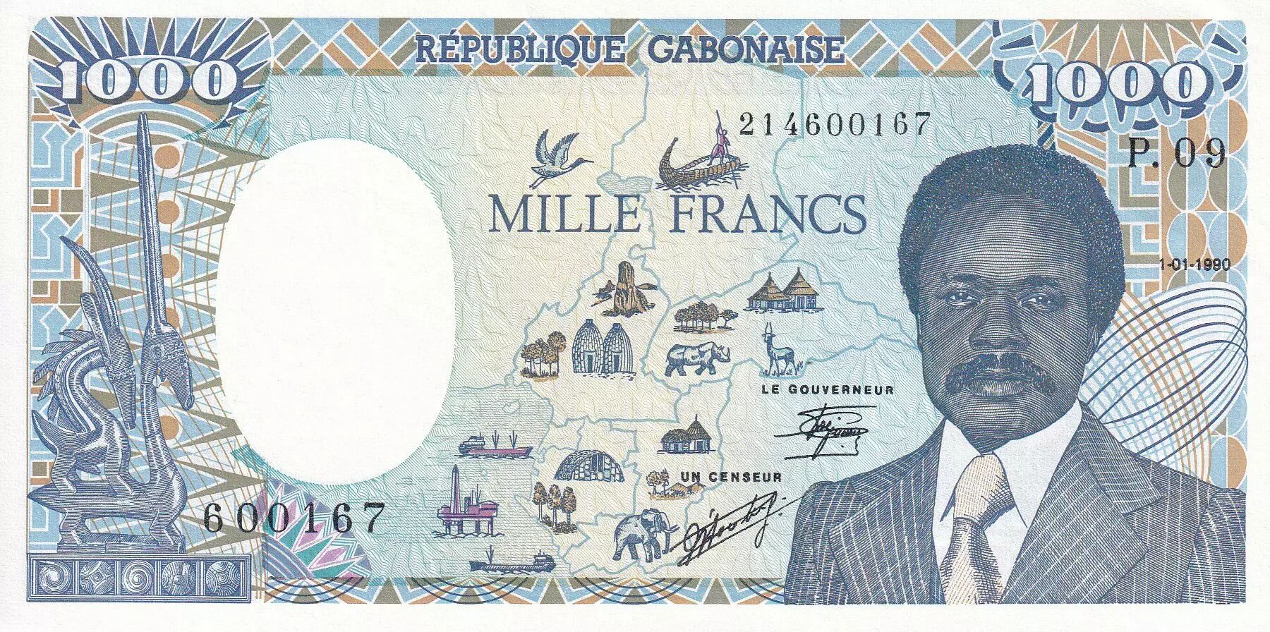 Home > > Gabon 1000 Francs Map of CAS (completed) - 1986 - Serial P.09 - UNC - P.10a