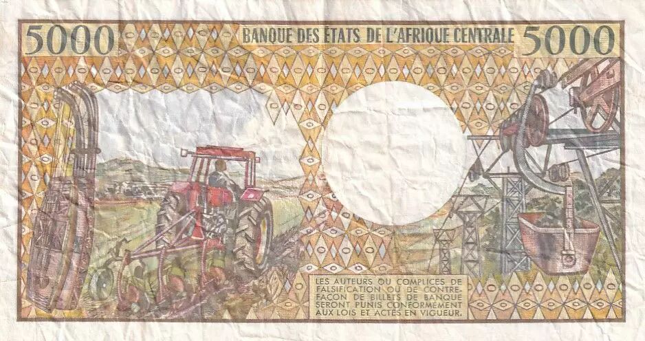 Home > World Banknotes > African Banknotes > Gabon > Gabon 5000 Francs mask, young woman - 1983-1991 - Serial P.001-408564