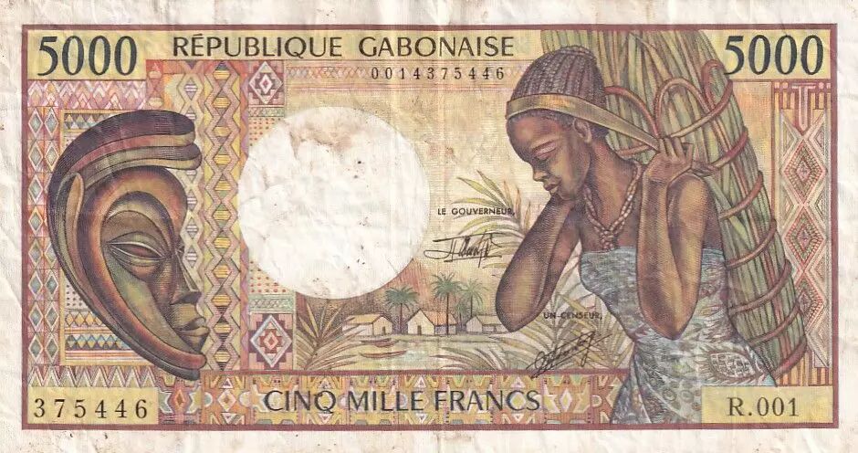 Accueil > Billets du Monde > Billets d'Afrique > Gabon > Gabon 5000 Francs masque, jeune femme - 1983-1991 - Série R.001-375446