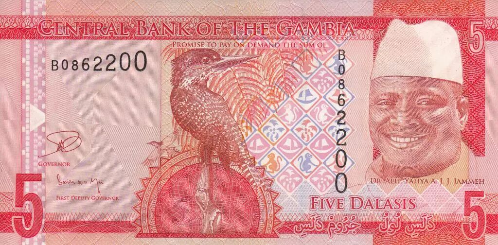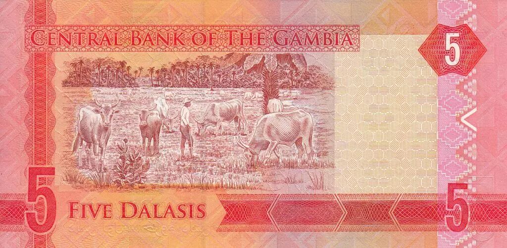 Billet Gambie 5 Dalasis Dr J. J. Jammeh - Agriculteur avec des vaches - 2015