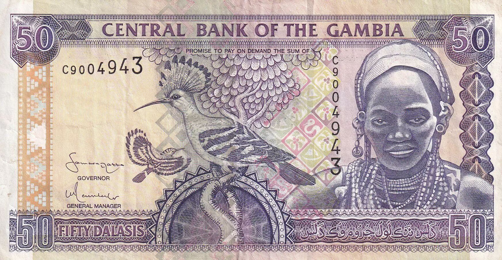Billet Gambie 50 Dalasis - Femme et oiseau - 1996 - P.19