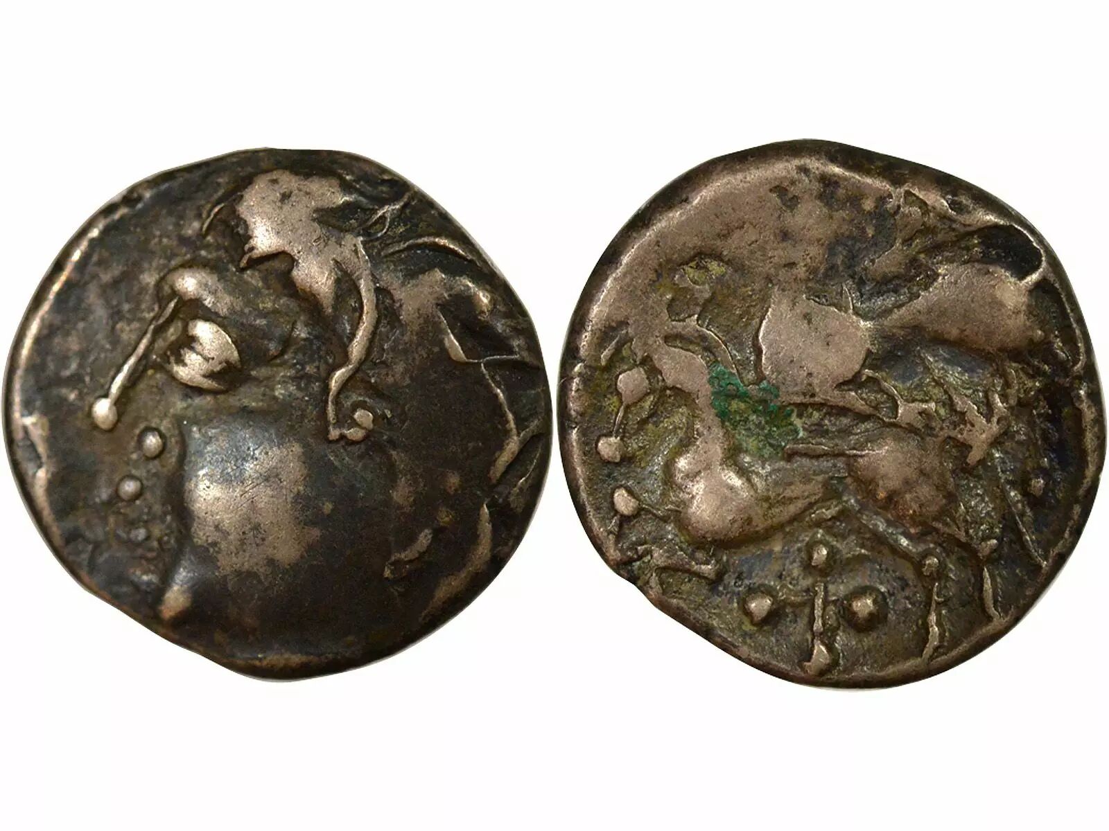 Accueil > Monnaies antiques > Monnaies Gauloises (-450 à 50) > Gaule (Carnutes) Carnutes / Pictons / Bituriges - Drachme aux deux Cheveaux et à la Croix bouletée - Ie Siècle Av JC