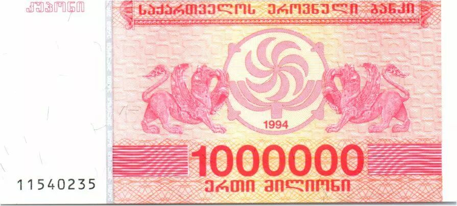 Banknote Georgia 1000000 Lari Griffins - 1994