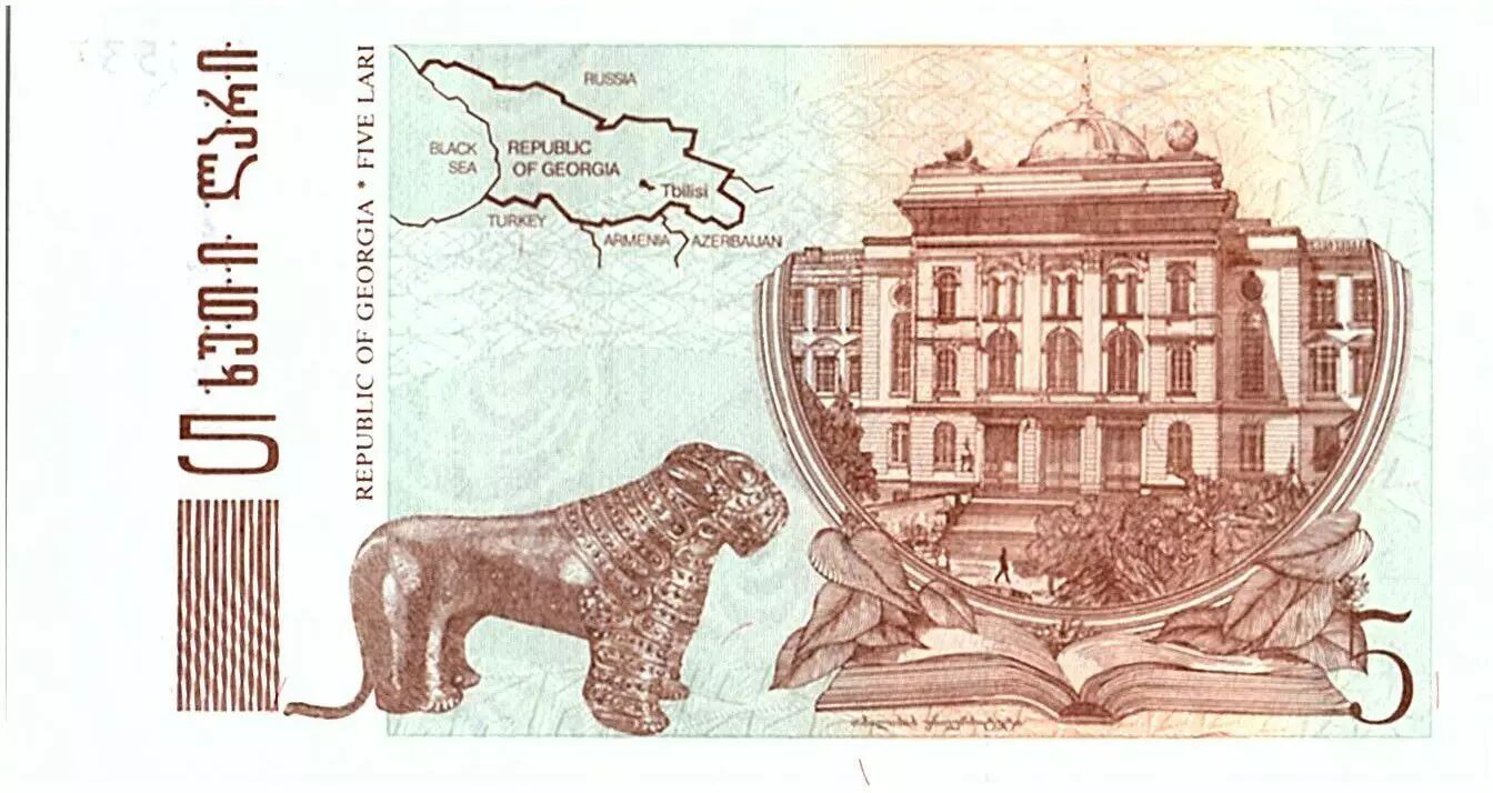 Banknote Georgia 5 Lari, I. Javakhishvili - Georgia map, University - 1995