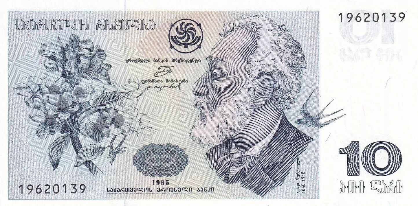 Billet Georgie 10 Lari - A. Tseriteli - Fleur - 1995 - P.56