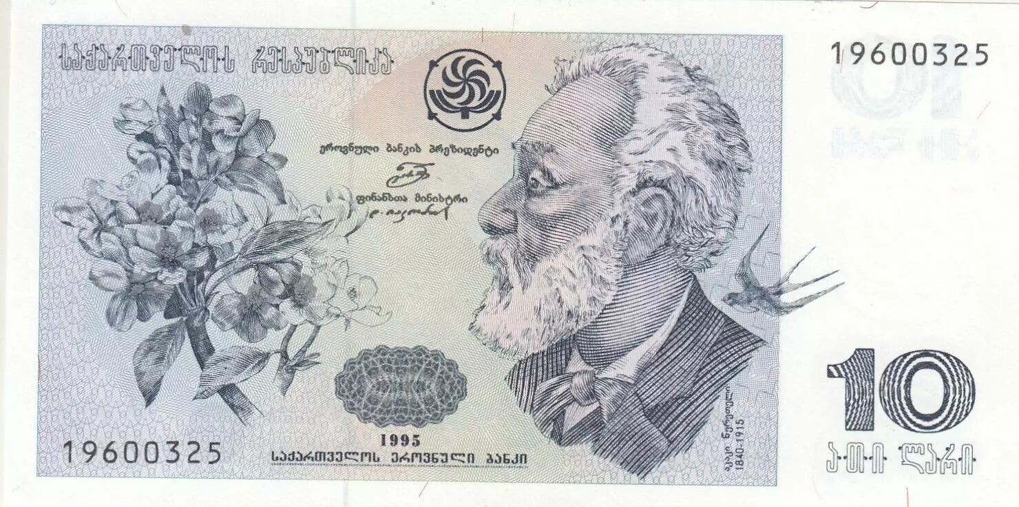 Billet Georgie 10 Lari - A. Tseriteli - Fleur - 1995 - Série 19600325