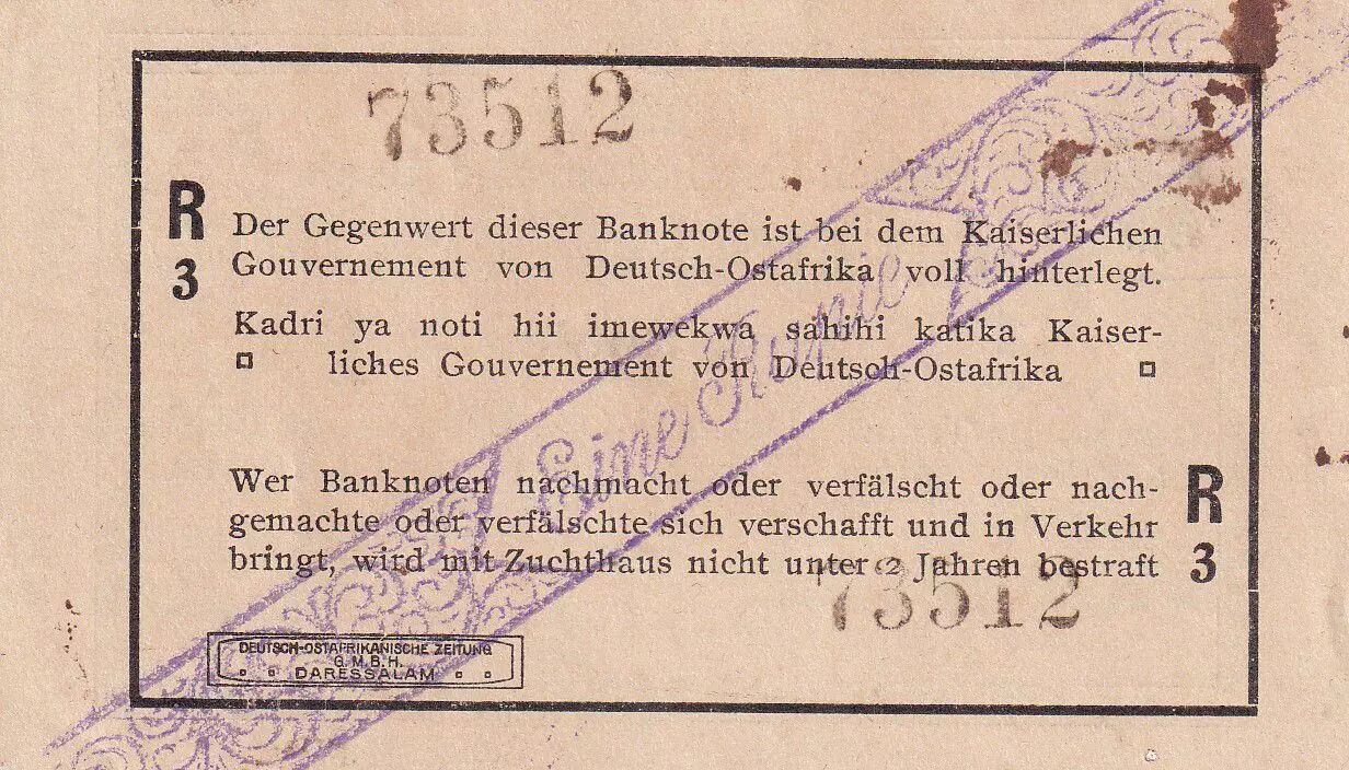 Home > > German East Africa 1 Roupie - Black - 1916 - Serial R.3 - P.20a