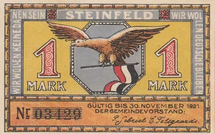 Banknote Germany 1 Mark - State of Steinfeld - 30-11-1921 - Number 03429