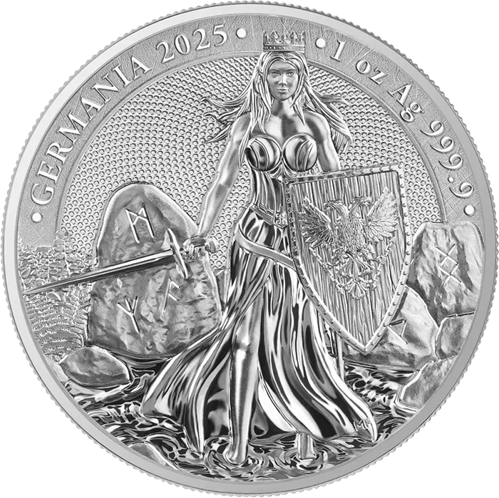 On the obverse of the coin, Germania is depicted in a manner reminiscent of her first image in the series, although this time her head is adorned with a royal crown, replacing the laurel of victory she has worn for years. On the reverse, the majestic double-headed eagle, a symbol of strength and independence, continues to appear.