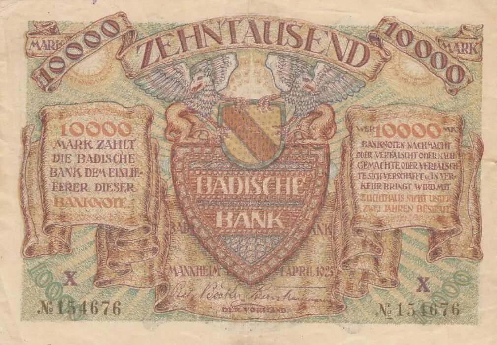 Banknote Germany 10 000 Mark - City of Manheim - Serial X - 1923