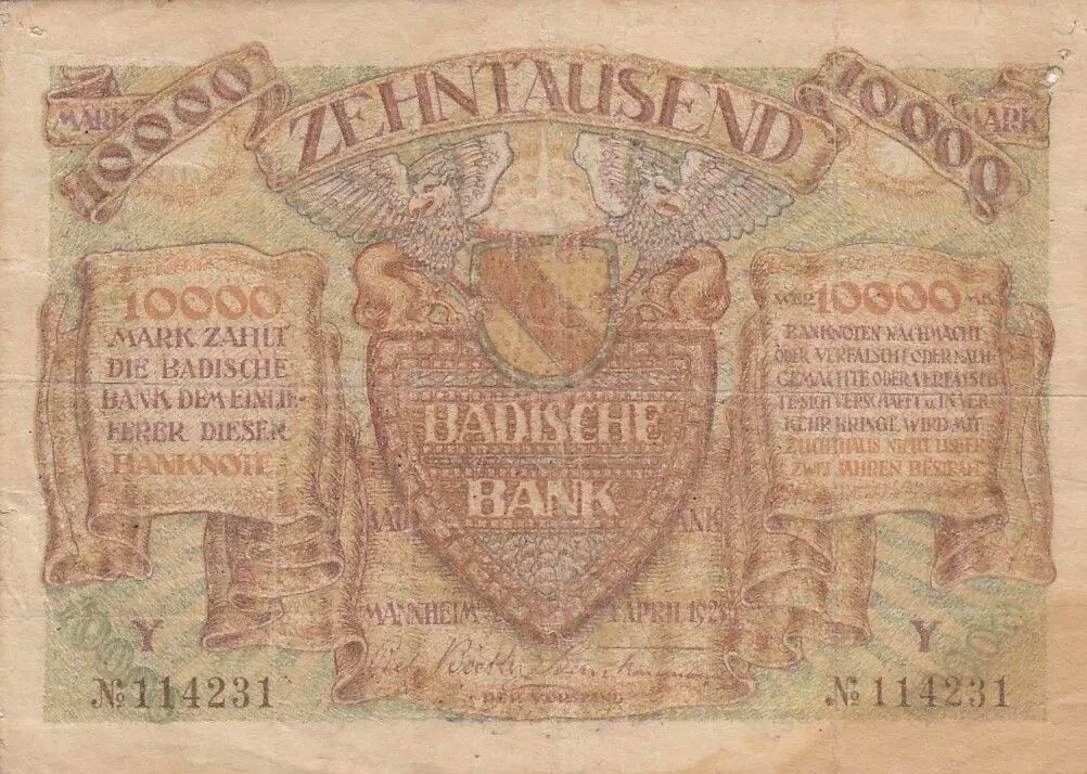 Banknote Germany 10 000 Mark - City of Manheim - Serial Y - 1923