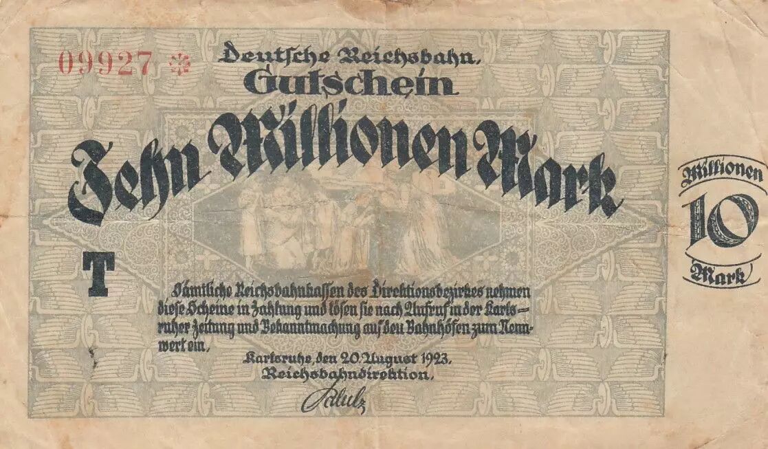 Banknote Germany 10 millionen Mark - State of Dusseldorf - 1923 - Number 09927