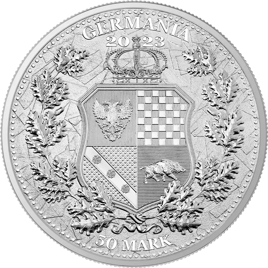 As in the previous series, the image on the reverse side is the coat of arms representing moral principles and noble values. Germania was a historical land and was never an official country, so we decided to create our own interpretation of its coat of arms. Its symbols and design are the fruit of our imagination but have been created in accordance with the current heraldic rules.