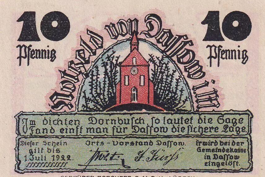 Banknote Germany 10 Pfennig - Dassow - Notgeld - 1921