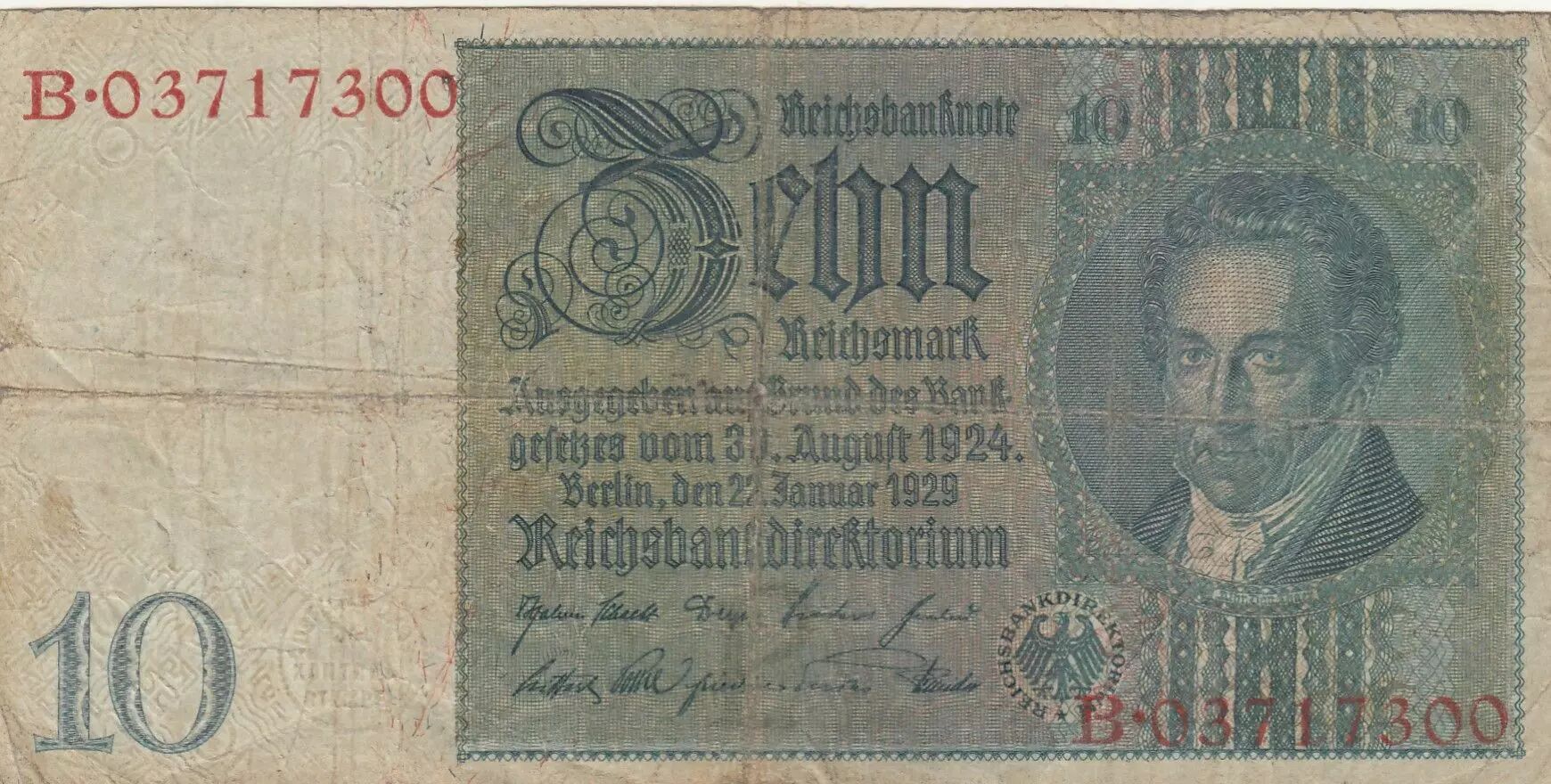 Banknote Germany 10 Reichsmark - Albrecht D. Thaer - Serial B - 1929 - P.180a