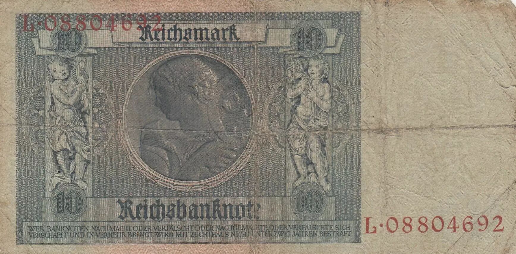 Banknote Germany 10 Reichsmark - Albrecht D. Thaer - Serial L - 1929 - P.180a