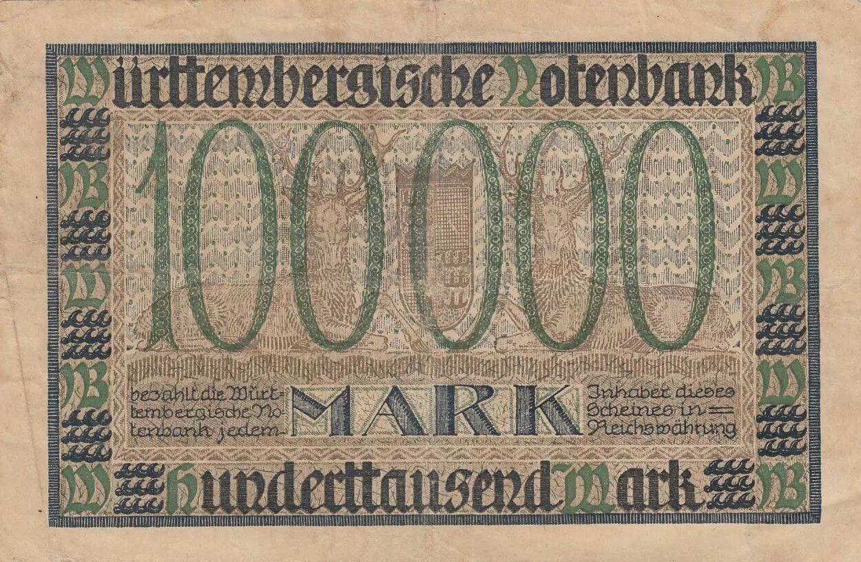 Home > > Germany 100 000 Mark - City of Wurttemberg - Serial G - 1923