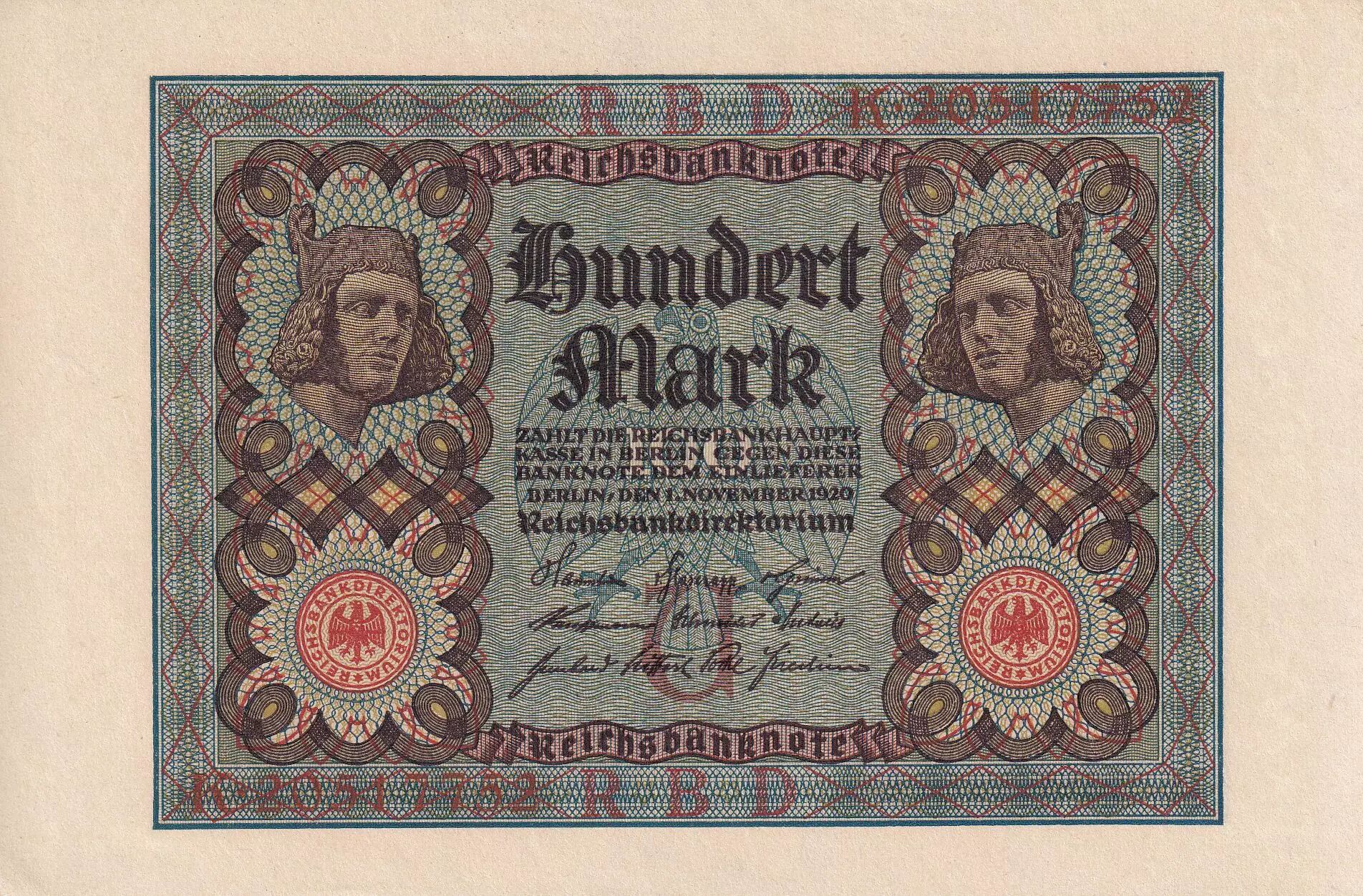 Banknote Germany 100 Mark - Bamberg horseman - 1920 - Serial K - P.UNC - P.69b