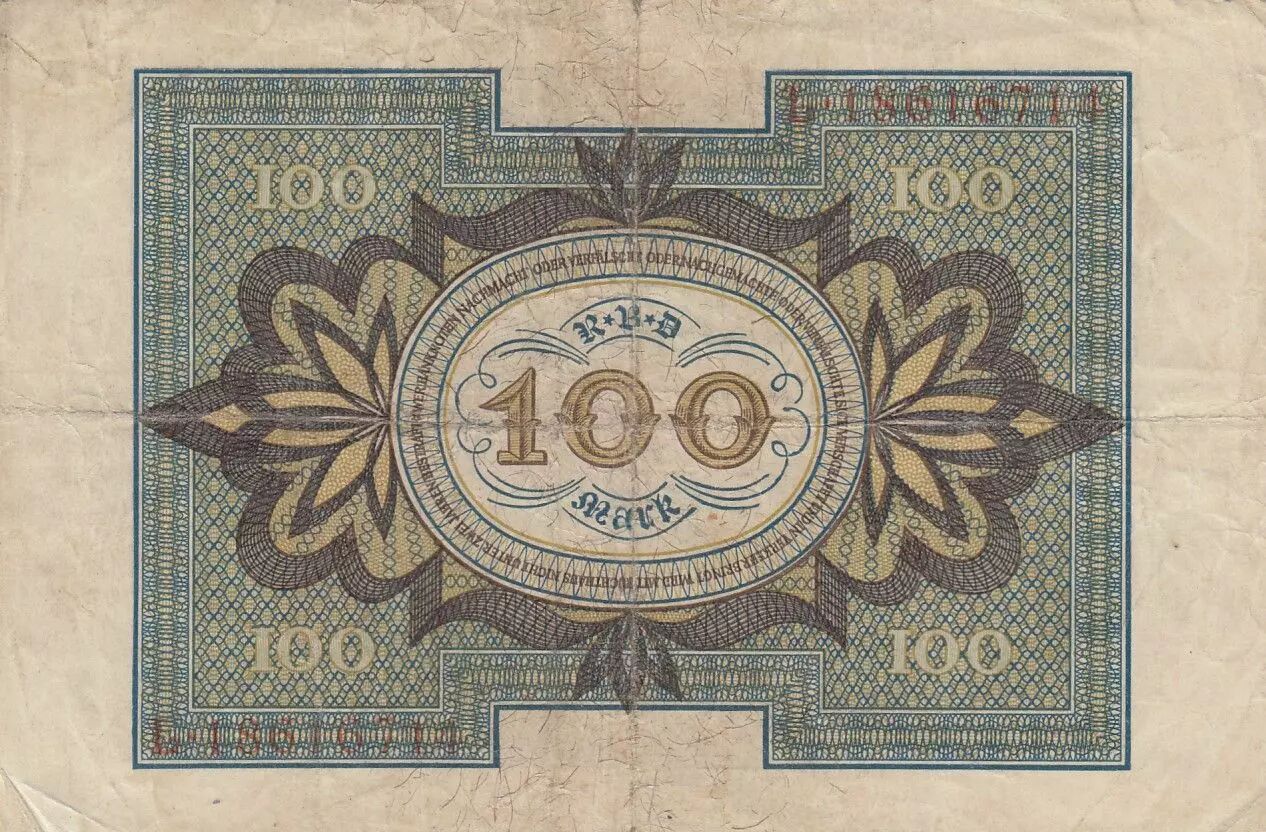 Home > World Banknotes > European Banknotes > Germany - German States > Germany > Germany 100 Mark - Bamberg horseman - 8 digit - 1920 - Serial P - P.69b