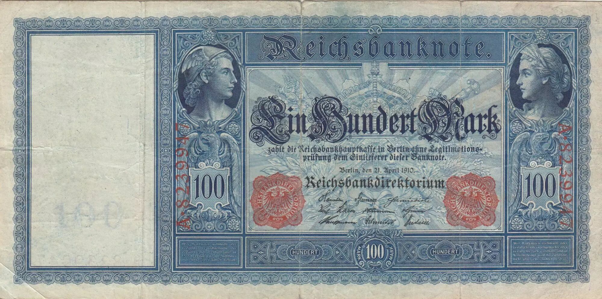 Banknote Germany 100 Mark - Mercure et Cérès - 21-04-1910 - Serial A