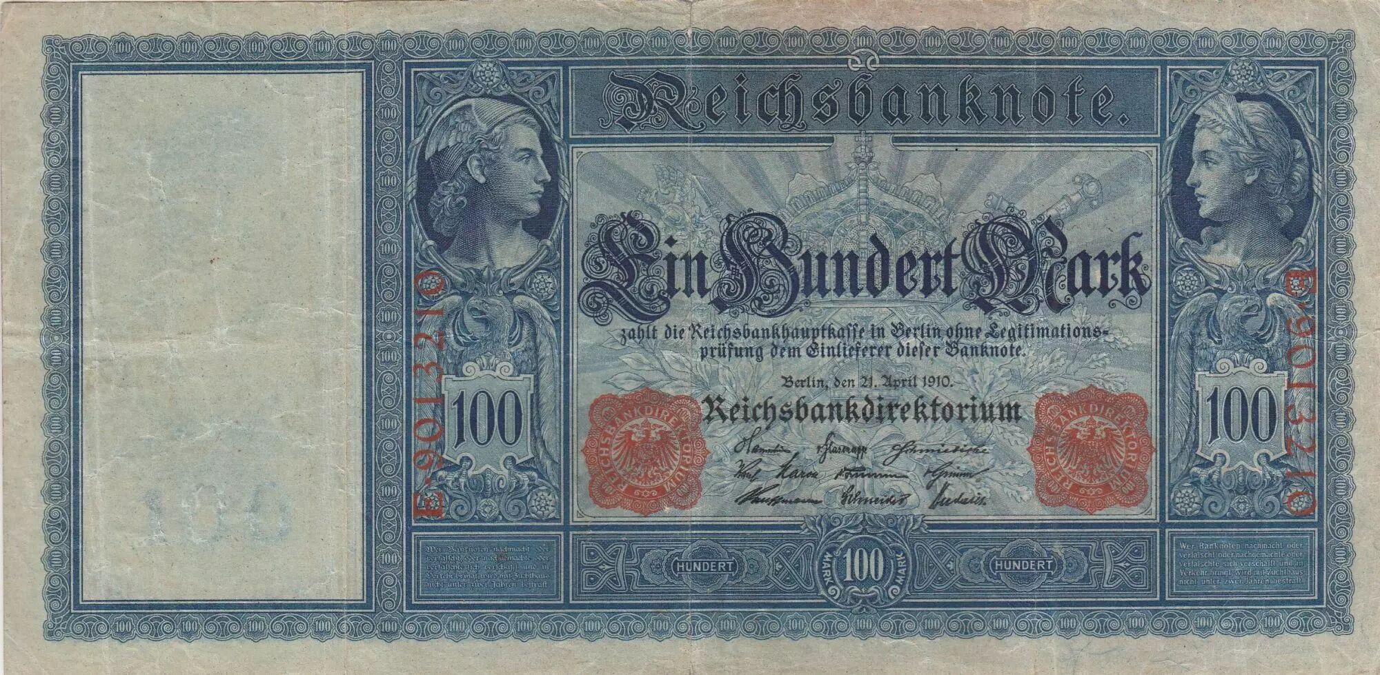 Home > World Banknotes > European Banknotes > Germany - German States > Germany > Germany 100 Mark - Mercure et Cérès - 21-04-1910 - Serial E