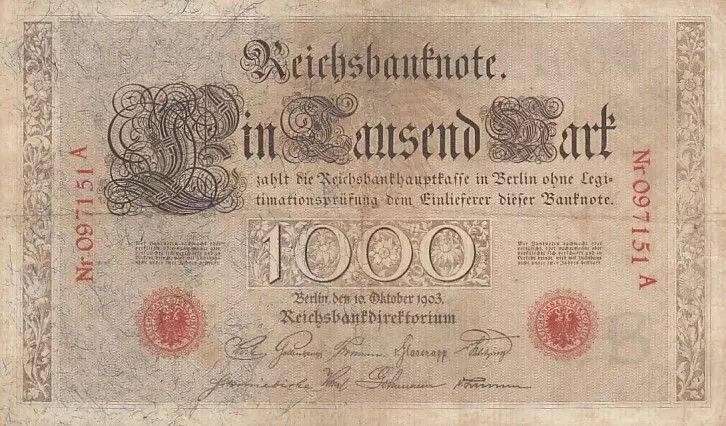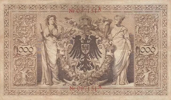 Home > > Germany 1000 Mark Allegorical figures - Red seal - 1910 - 6 digit serial Nr - P.44a