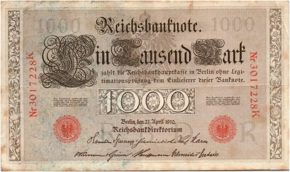 Banknote Germany 1000 Mark Allegorical figures - Red seal - 1910 - 7 digit