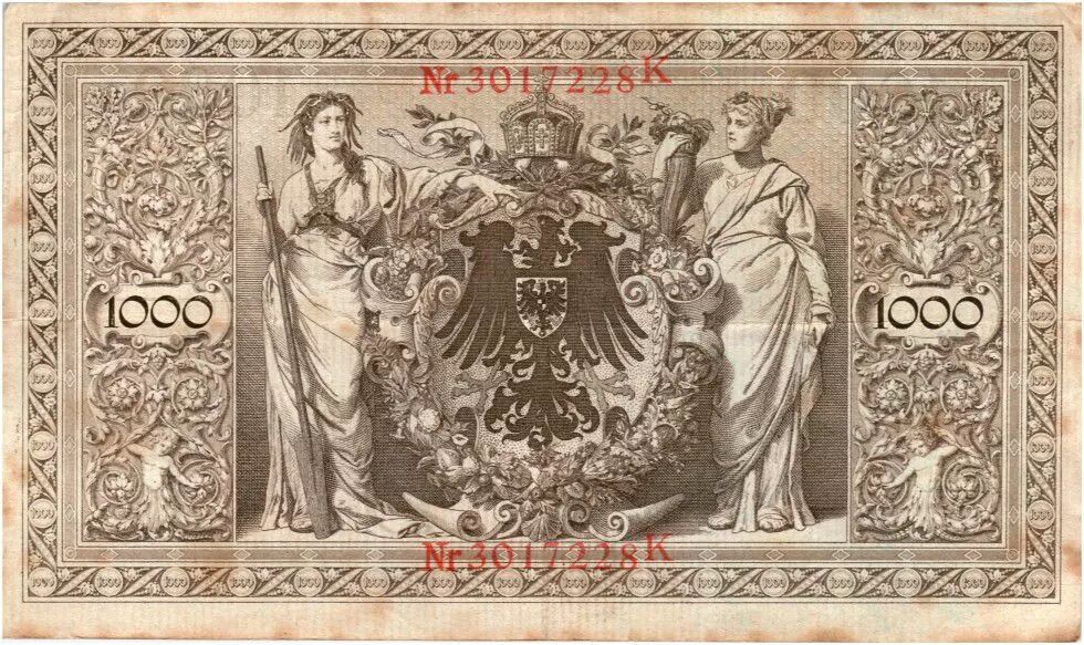 Home > World Banknotes > European Banknotes > Germany - German States > Germany > Germany 1000 Mark Allegorical figures - Red seal - 1910 - 7 digit