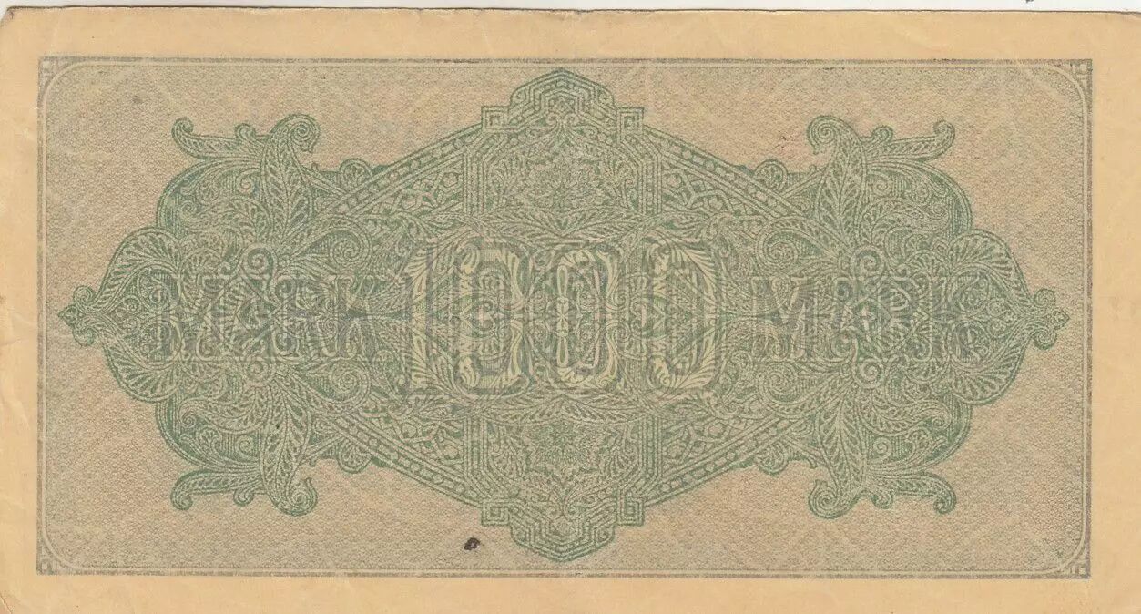 Banknote Germany 1000 Mark Dk green on green and lilac - 1922 - serial K*-XB