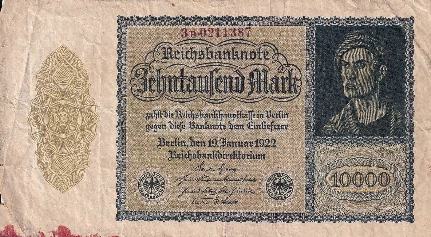 Banknote Germany 10000 mark - Portrait by Albrecht Dürer - Reichsbanknote - Serial 3b